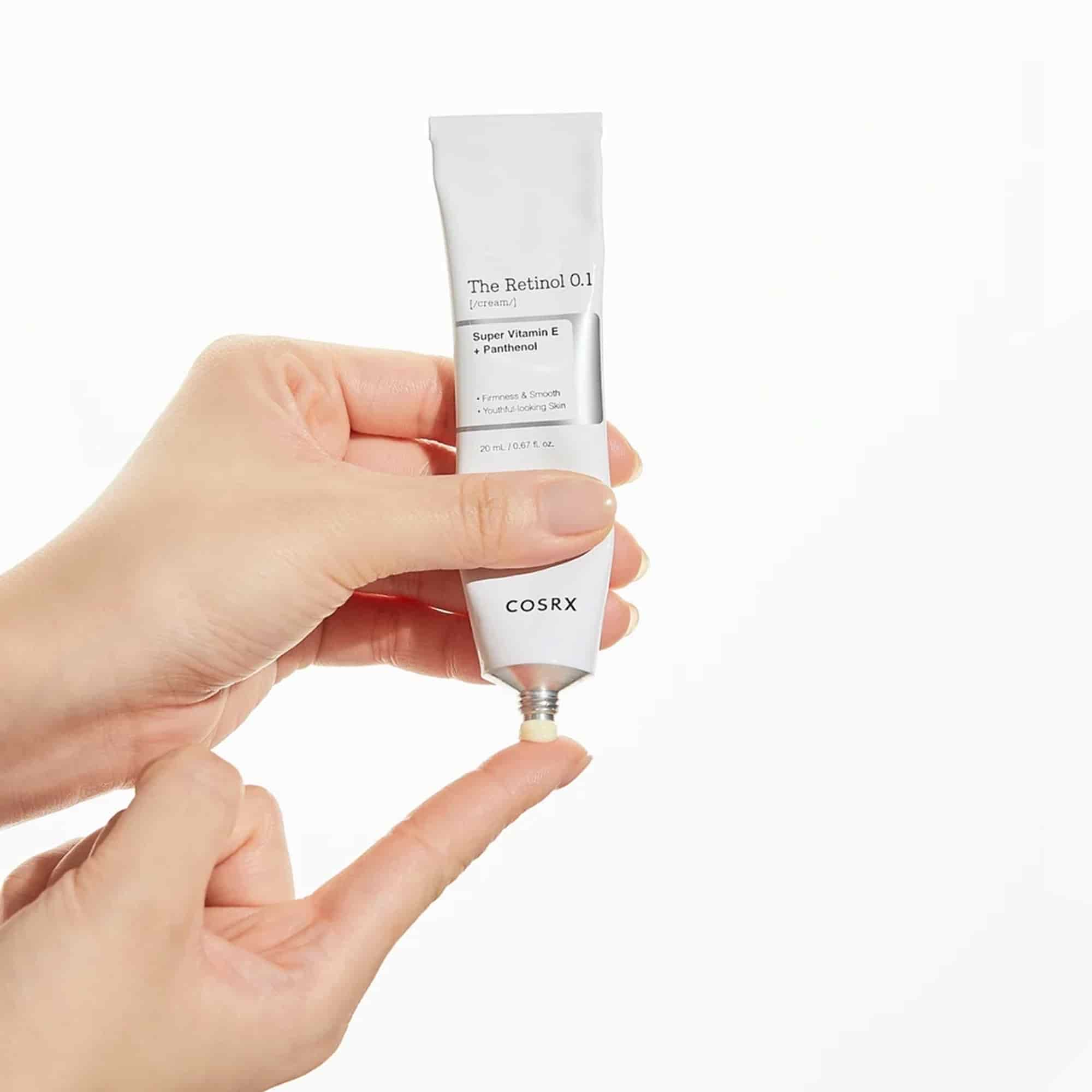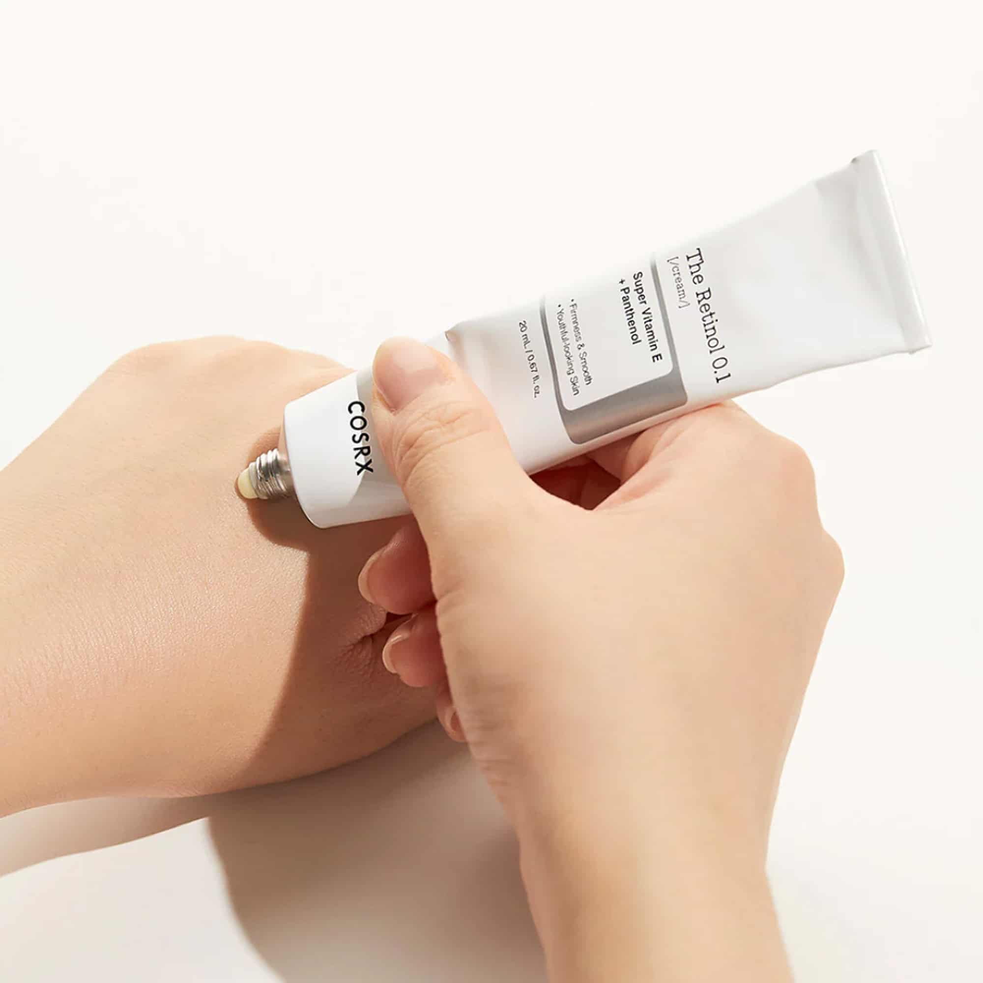Comience aplicando COSRX The Retinol 0.1 Cream 20ml en las áreas afectadas (frente, área de los ojos, pliegue nasolabial, cuello, etc.) cada dos noches. Después de aumentar la tolerancia, aplique una cantidad del tamaño de un guisante en todo el rostro todas las noches.